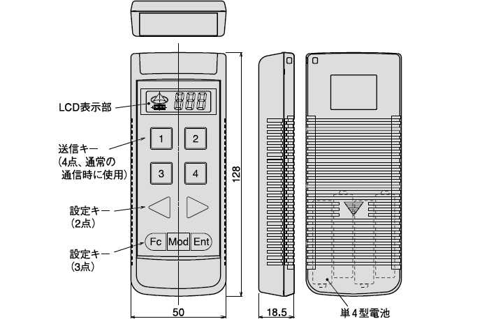 | 表示 | LCD表示 3桁、バッテリー表示、送信表示(バックライト付) | |