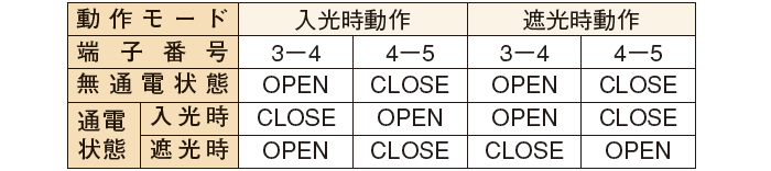 | 動作モード | ライトON(入光時動作)/ダークON(遮光時動作)切換式 | |