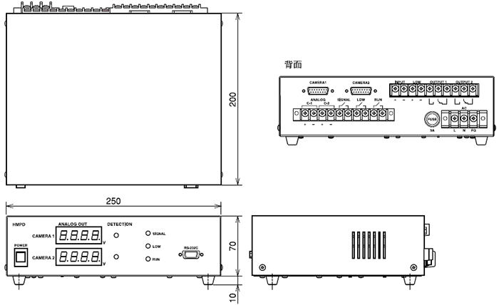 | 表示 | 7セグメントLED4桁×2(カメラ毎のアナログ出力のデジタル表示) | |