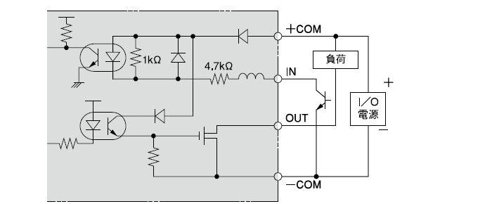 出力回路に自己保持機能付き接点出力を接続する際は、起動時に意図しない出力状態を保持しないように十分な検証を行って下さい。